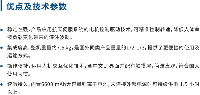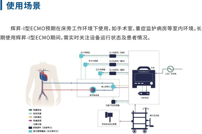 辉昇-I型ECMO 辉昇-I型ECMO是航天新长征医疗器械(北京)有限公司(简称“长征医疗”)基于前期人工心脏研究基础,应用航天伺服技术,坚持自主可控,联合北京协和医院等众多国内顶尖医院医工结合,悉心打磨研制的一款高端医疗器械。 向下滑动 查看更多 辉昇-I型ECMO 图 主机正面 主机背面 压力电缆线 流量/气泡传感器 手摇紧急驱动装置 推车 手摇紧急驱动装置支架 氧气瓶支架 氧合器支架 向下滑动 查看更多 向下滑动 查看更多 向下滑动 查看更多 向上滑动 已显示全部
